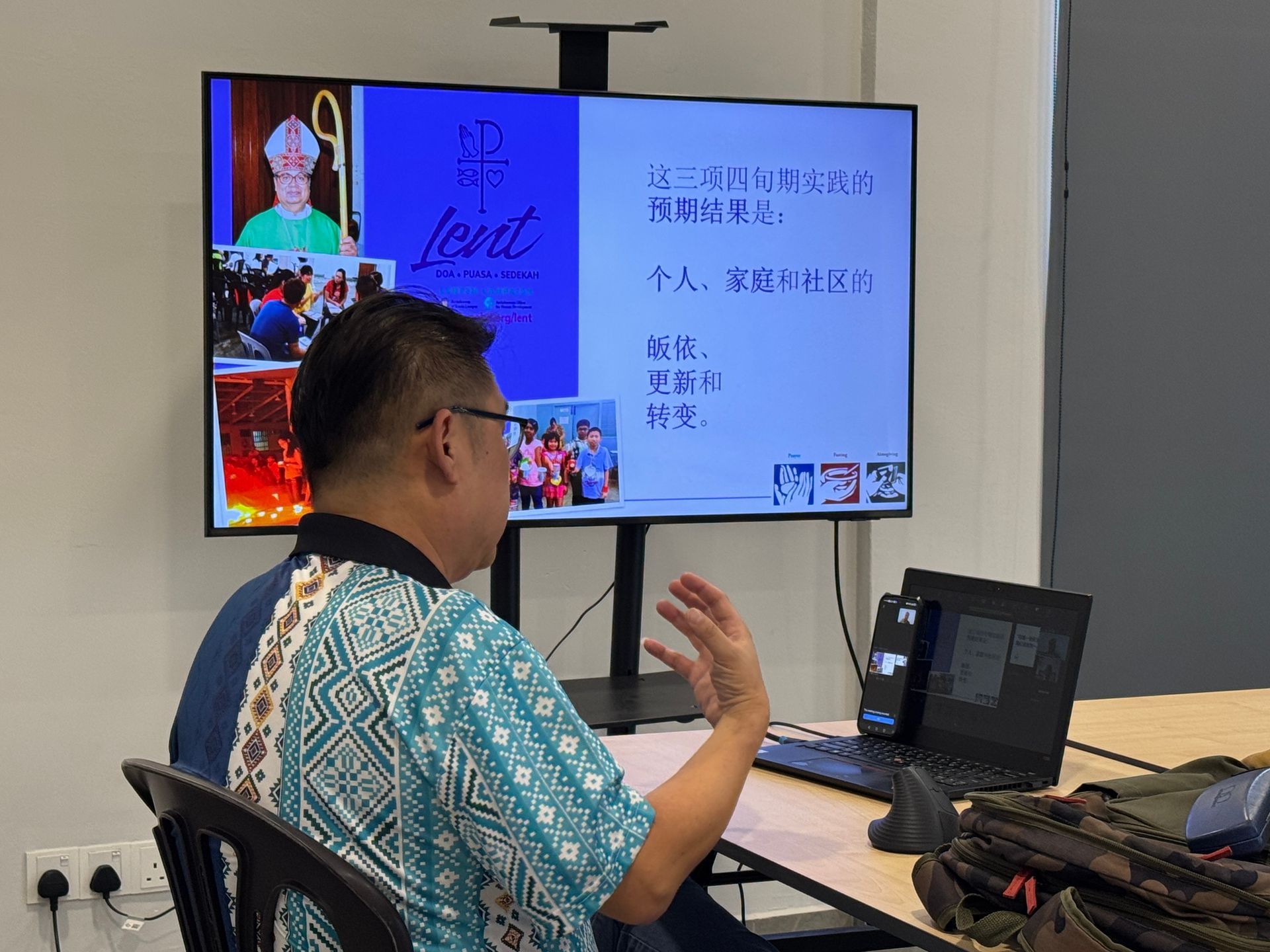 An online Zoom briefing session was also held simultaneously by the Mandarin presenter for those unable to attend in person. The Prison Ministry Coordinator Gnadass, and Ministry of the Poor Coordinator Aaron, were also in attendance to answer queries and inform participants about their ministry and programmes. Lent Programme details and resources are downloadable at
