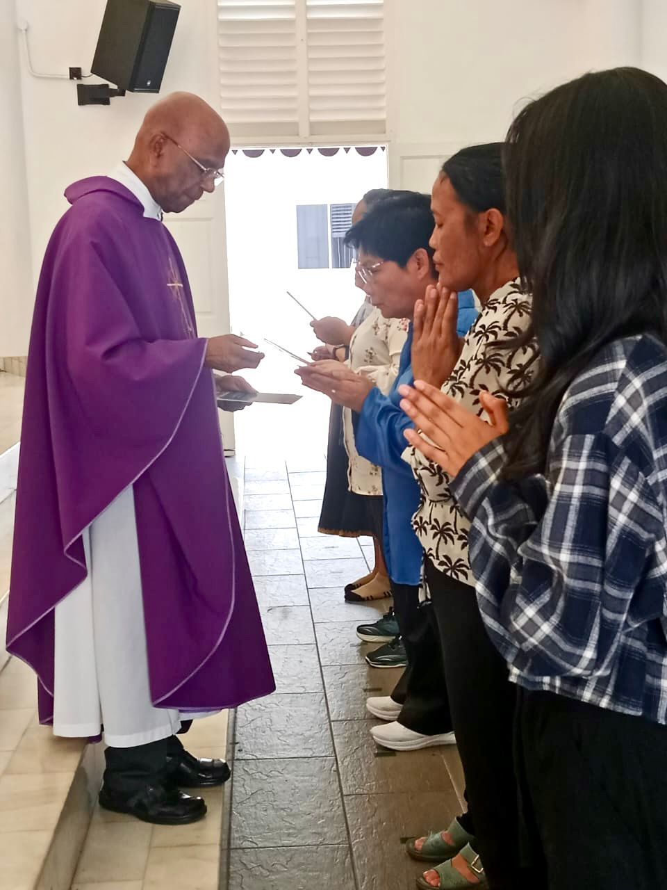 On the third Sunday of Lent, the Church of Our Lady of Lourdes in Klang joined parishes throughout the archdiocese to celebrate the First Scrutiny for the RCIA Elect. The ceremony, presided over by Fr. Gregory Chan, Fr. Gnana Selvam Berentis, and Fr. Lawrence Andrew SJ, took place during English, Tamil, and Bahasa Malaysia Masses.